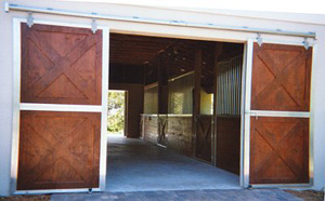 version for those that desire the look of a Dutch door but only want one solid swinging door panel. Armour also offers the not split version as a sliding door which is typically used in the tack and or feed room. Not split doors can be used as bathroom, office, or bedroom doors. They can be used just about in any location in your home, office or barn if a barn or stable appearance is desired. Also two Crossbuck Double Dutch Not Split doors (available in hinged or sliding) can be doubled and used for a larger end barn door opening.