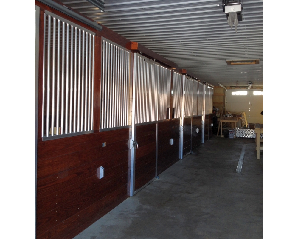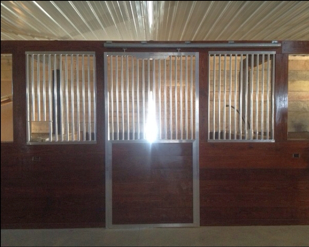 To accommodate the needs of all equine enthusiasts’ stables, Armour offers 3″, 2″, and 1″ spacing between stall bars. Mr. Balcerak desired stall fronts and grilles with a 2″ between bar space. Stall doors featured Lift Out Panels to allow horses to browse the aisle and Feed Cut Out holes allow for easy feeding through stall bars. Standard and custom length grilles were manufactured for each stall’s front, back and side.