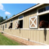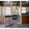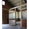 Mr. Brennan called Armour with a very specific look in mind for the stall doors that were to be installed in the Brookside Pine Farms facility. Hinged doors that are the full height of a sliding door, 8’0″ tall. Lumber name plates were installed in the door centers as requested and lumber was stained to match the stall fronts. Exterior shutters with a Crossbuck design were installed to allow horses to hang their heads out into the pasture area.