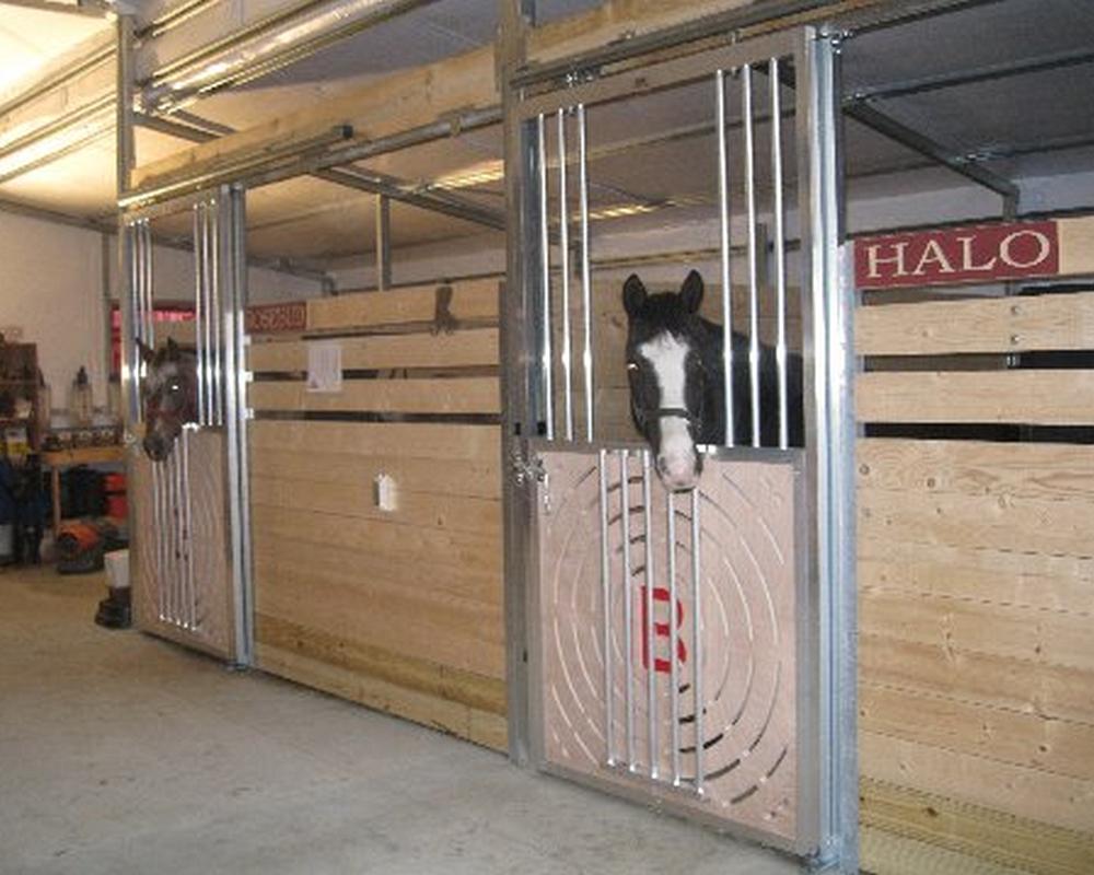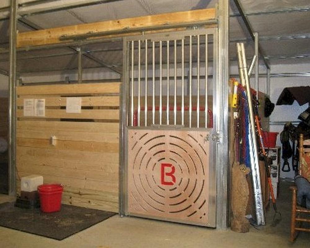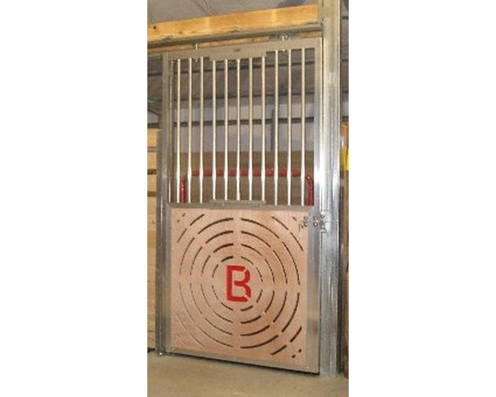 Check out this website for more photos of Circle B Farm and their horses: www.circlebequine.comHaving moved from the city life of Miami, Florida to the country roads of Georgia, the owners of Circle B Farm wanted a stall door that matched their aluminum barn interior. rest of their modern aluminum components. Upon arrival at the Armour facility, they were greated by Armour Staff and their needs were discussed. A ventilated lumber panel was manufacuted with a red “B” in the center, complete with hardware and without the “Miami” price tag. Just another one of Armour’s satisfied customers! Thank you Circle B!!