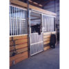 The Combee’s, three stall lumber barn is equipped for maximum ventilation. The Coolbreeze Gossip Top Sliding Stall Doors have full height 8’ vertical square tubing on both sides for rigidity and the formed Triple Bar Zephyr-Top on both sides of the door top allow horses to view the aisle way. The reinforced header and lower mid channels assist in door strength and durability. One inch round bars with one inch between bar space on the lower 4’0” bottom provide top ventilation. These foal friendly doors come fully assembled and feature our weld free appearance for a clean and stunning stall door. The Combee’s have coupled their highly ventilating doors with 4’0” height front grilles and partitions. All components allow air to flow more freely in and around the stall area. Lower stall lumber is mounted with spacing between for added stall ventilation.