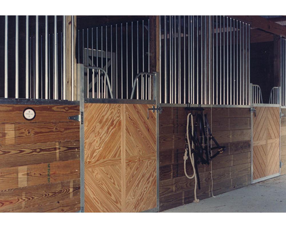 The Frank’s had a similar situation and Armour helped. Constructed with a lumber interior, this Anthony, Florida six stall boarding stable is equipped with Armour’s Diamond fascia Gossip Gates. As you can see they compliment Armour stall front grills and matching divider partitions. These gates are custom designed, not standard, out of Armour’s best #1 grade southern yellow pine tongue and groove for the Frank’s stable. If you have an idea give Armour a call and maybe we can assist you!