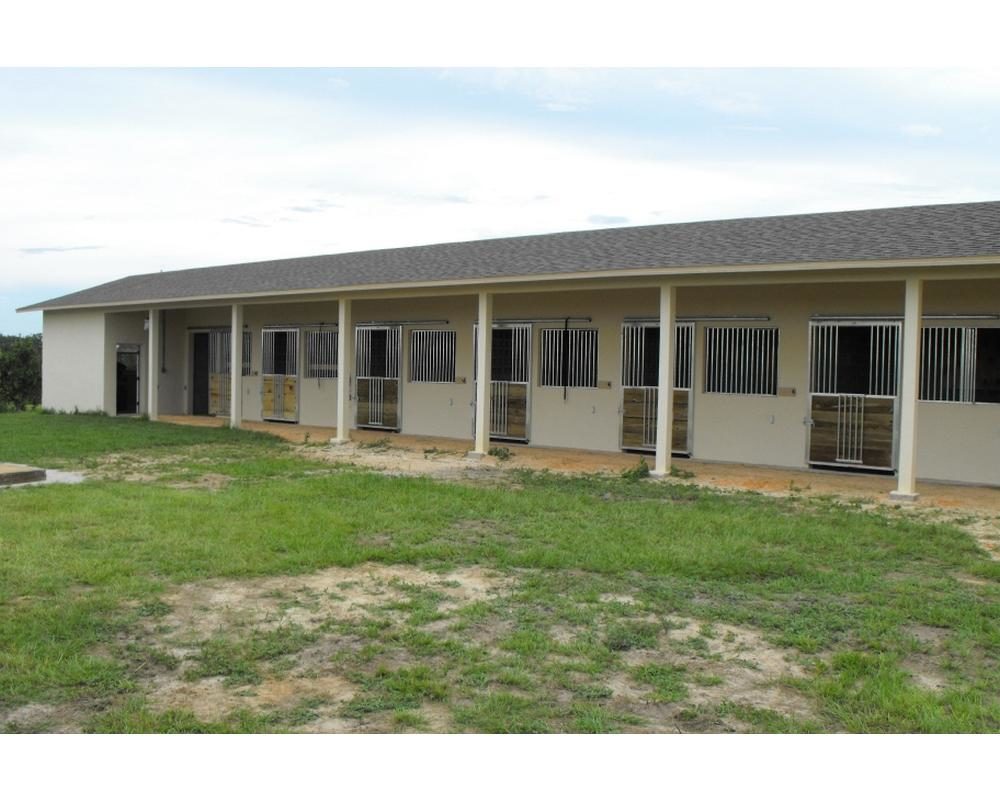 Mr. Green’s 8 stall barn in Ocoee, Florida was constructed of concrete block. Block openings were left open for the 72″ wide stall door and 60″ wide stall grille. The top of both openings was finished with a lintel for a smooth and finished appearance. The lintel allowed a place for mounting the top of the grille in place and the track which the door slides on. Front grilles are 3″ between bar spacing and feature Armour’s hidden Feeder Access Door which allows quick access for feeding, hay or petting. If you are building a concrete barn, please call on Armour for the fabrication of your stall components. We specialize in stall configurations for concrete barn installation. Do it Right, Do it Once!