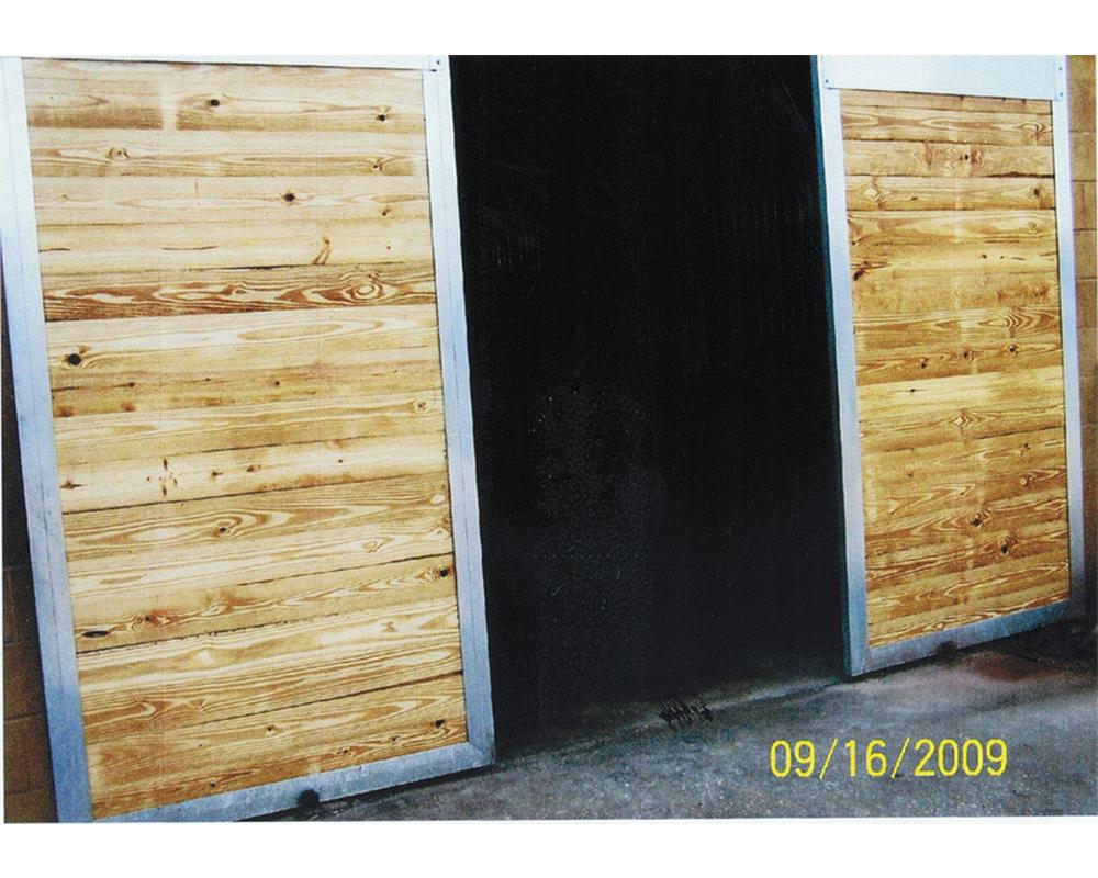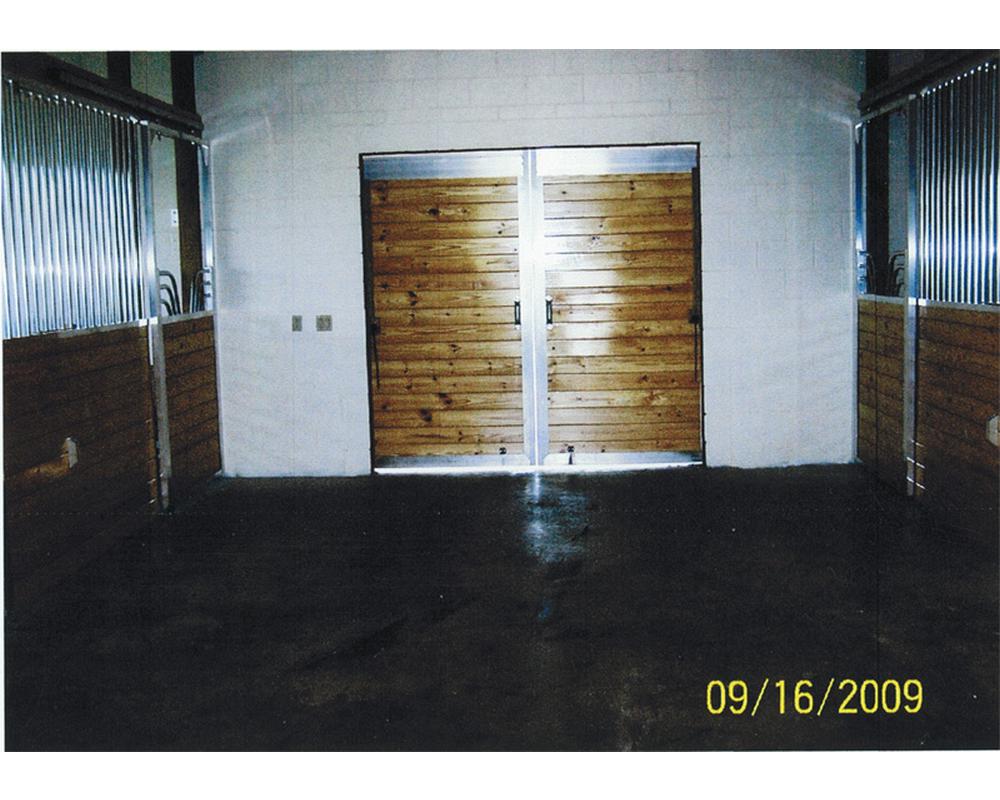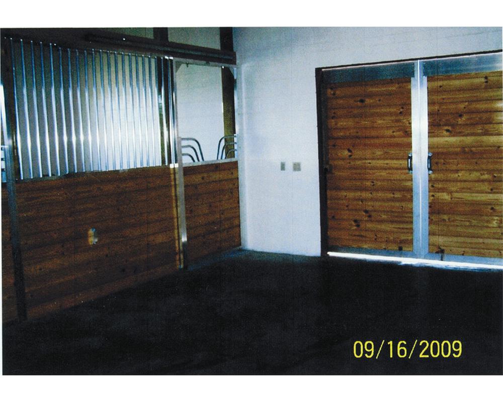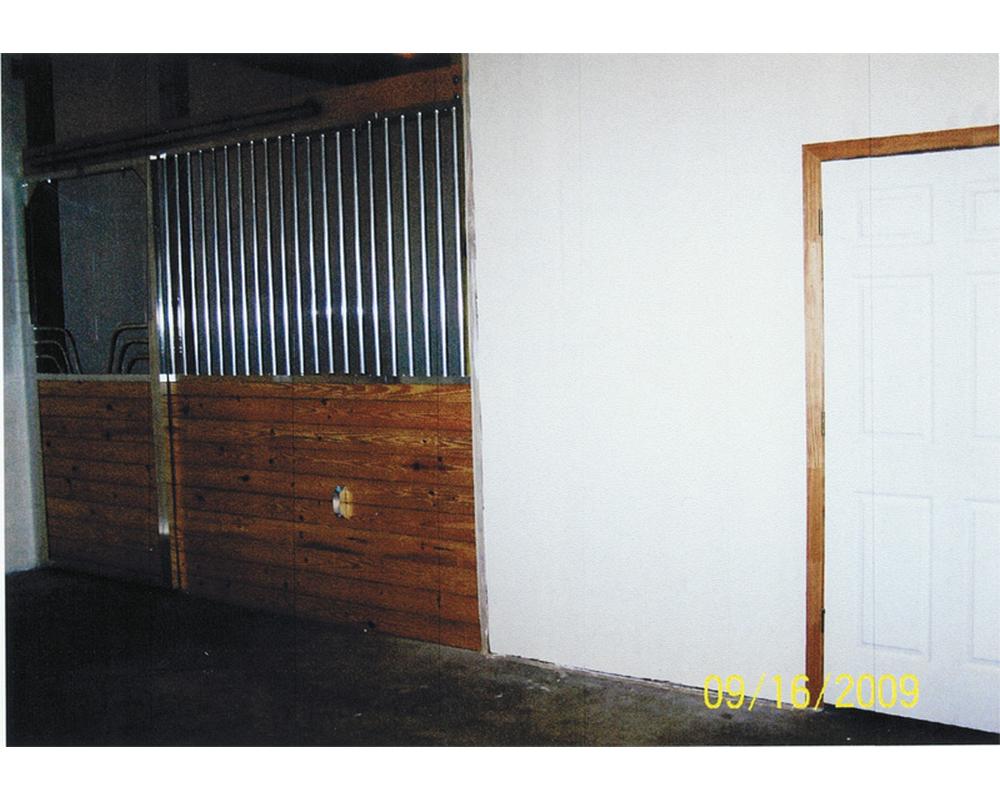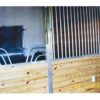The 4 stall Hill Barn was constructed in 2009. Owners equipped their concrete structure with lumber interior walls and posts. Gossip Sliding Gate Frames were purchased and all the same Tongue & Groove lumber was used throughout the barn, stall doors and end barn door frames. The overall appearance is uniform and symmetrical. Stall grilles are 4′ high to match the overall door frame, as well as, the divider grille partition.