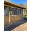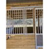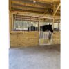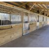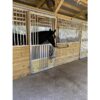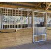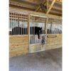 The builder for Ms. Hunt reached out to Armour, preconstruction, to order this 8 stall barn full of Armour Horse Stalls. Front of stalls are equipped with Coolbreeze Sliding Stall Doors with Scuff and Fold Down Tops. The bar spacing on the top of the door is Armour’s standard 3″ between bar spacing and the lower middle has a 1″ spacing. The extreme bottom kick panel has lumber installed by the builder to match the stall walls. Front Grills are equipped with a Feeder Access Door and also feature 3″ between the bar spacing. Grill Partitions are between each stall and approximately 144″ in length and 48″ tall. The stall backs are unique with a bar top sliding door, SDSO which also allows wood fill to be installed by the builder. Similar Stall Front Grills were purchased for the back of the stall to add extra airflow on the hottest of Florida summer days! All doors included hardware for rolling the door open, locking and fasteners were included for the installation of each stall grill.
