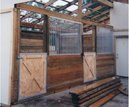 Lumber Construction Barn, Stall Front Grilles, Feeder Access Doors, Double Dutch Doors, Dutch Doors, Horizontal T&G Sliding Gossip Doors, Crossbuck Bar Top Sliding Door, Crossbuck Sliding Door, 2 Stall Barn, 4 Stall Barn, 6 Horse Stalls Barn