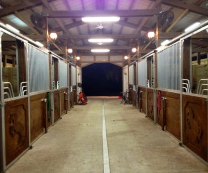 Concrete Barn, Coolbreeze Sliding Stall Door, Concrete Stall Fronts with 4′ High Stall Grills, 4’0″ Ventilation Grills, 8 Stall barn, Blue Barn built in Puerto Rico