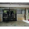 Ms. Pharo contacted Armour Gates with an interesting “renovation,” a free standing carport. She desired to install 2 stalls with 12’ fronts x 10’ depth between her existing stone columns. As you can see, both her daughter and equines love their new horse stalls.