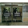 Armour’s Coolbreeze Sliding Door with horizontal T&G Scuff Panel (7COOLWSP5) was ordered in a 7’0” height to accommodate her existing height requirement. Sliding stall door Superstructures (7SDS0,) also in 7’0” heights were additionally ordered for rear access to the stalls. Stall front grilles with feeder access required a 36” height to align with the 7’0” door’s 3’0” top. Similarly dividing stall partitions in a 36” height were ordered to keep all components and the stall aesthetically pleasing to the eye. Receiver channel was fastened vertically to the stall posts for lumber stall front and divider installation.