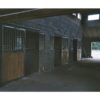 Eight Gossip Top sliding stall doors were ordered with #1 vertical T&G lumber. The gossip feature allows horses the freedom to browse the aisle-way at their discretion. Centered stall doors fall between twin stall front grille panels. One grille on each stall front is equipped with an easy feeder access door. Crossbuck Double Dutch Doors for each of Mr. Putzke’s horses allow equines to enter and exit the stall from the pasture and End Barn Door Superstructures have been added to each barn end and filled by Mr. Givens, with Mr. Putzke’s choice of lumber.