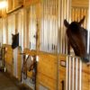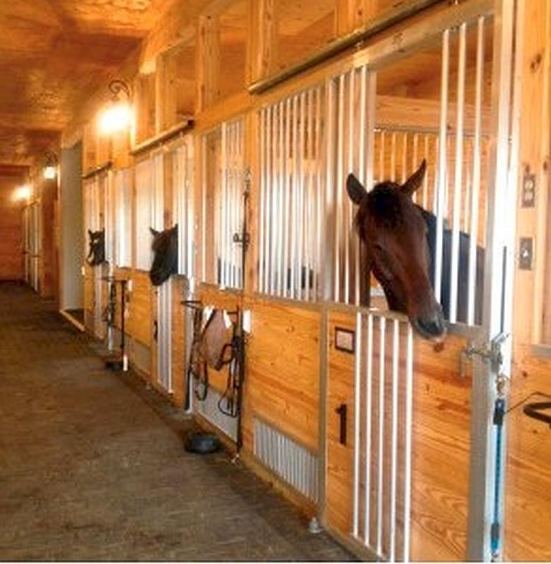 Mr. Salmon, Pepper Hill Farm, called Armour regarding stall doors for his new heated 12 stall boarding facility and riding arena. Ventilation was of some concern due to the length of time the barn is closed for Maine’s cool weather. Stall doors were chosen with a Spring Loaded Fold Down Panel in each door top. This feature allows horse’s head to hang into the aisle or be retained in a moments notice. Armour’s Superstructure SDSO model door was chosen so the same lumber, which was used throughout the barn, could be used in the bottom of the stall door. Stall Divider Grilles were installed to allow neighboring equines visitation without contact. All stall fronts, doors and divider partitions are fabricated with Armour’s standard 3″ between bar spacing. Ventilation Grilles in the bottom of the stall front are assembled with a 1″ between bar spacing. Stall doors arrived with Armour’s best hardware package which includes: round track, ball-bearing trolleys, aluminum stops, heavy duty latch and adjustable stay roller. Whether you are building a barn for your own private home or a boarding facility, consider Armour’s components to complete your barn and stalls!