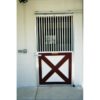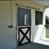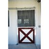 Mr. & Mrs. Smith contracted a block mason to build their clean 2 stall barn. Pictured is a Ultra 2000 Bar Top Sliding Door with a Crossbuck lumber panel (2″ bar top spacing on upper half of door). The lower lumber panel has been painted by Mr. Smith to match the additional red trim throughout the barn. The Ultra 2000 Bar Top features two inch between bar spacing for added equine security.