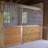 The Underill’s ordered stall doors with T&G lumber installed. Sliding stall doors arrived with all the necessary hardware for the door to slide, lock and function. Round track allows for doors to open with the push to two fingers. Stall Front Grilles were assembled with 1″ pickets/bars and with a 3″ between bar spacing. Interior Window Grilles feature one standard bar spacing and the other with a removable center grate, so stall inhabitants can hang their head into the pasture area for visibility and visitation.