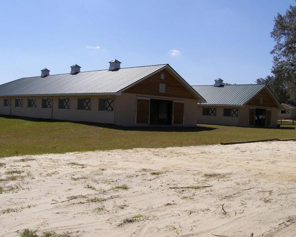 Windsong Equestrian Center is a beautiful 29 stall facility located in Apopka, Florida that works with special olympic children and horses. The equestrian center is equipped with Armour’s Coolbreeze Sliding Doors with scuff-panels as well as Lift-out Panel. This feature allows them to remove the middle section of bars from the top half of the door and allow the horses freedom to lookout into the aisle way.The center is also equipped with Armour “C” series (for concrete installation) stall front grilles and stall divider grilles with allow plenty of ventilation and visibility to neighboring stalls and from the aisle way.